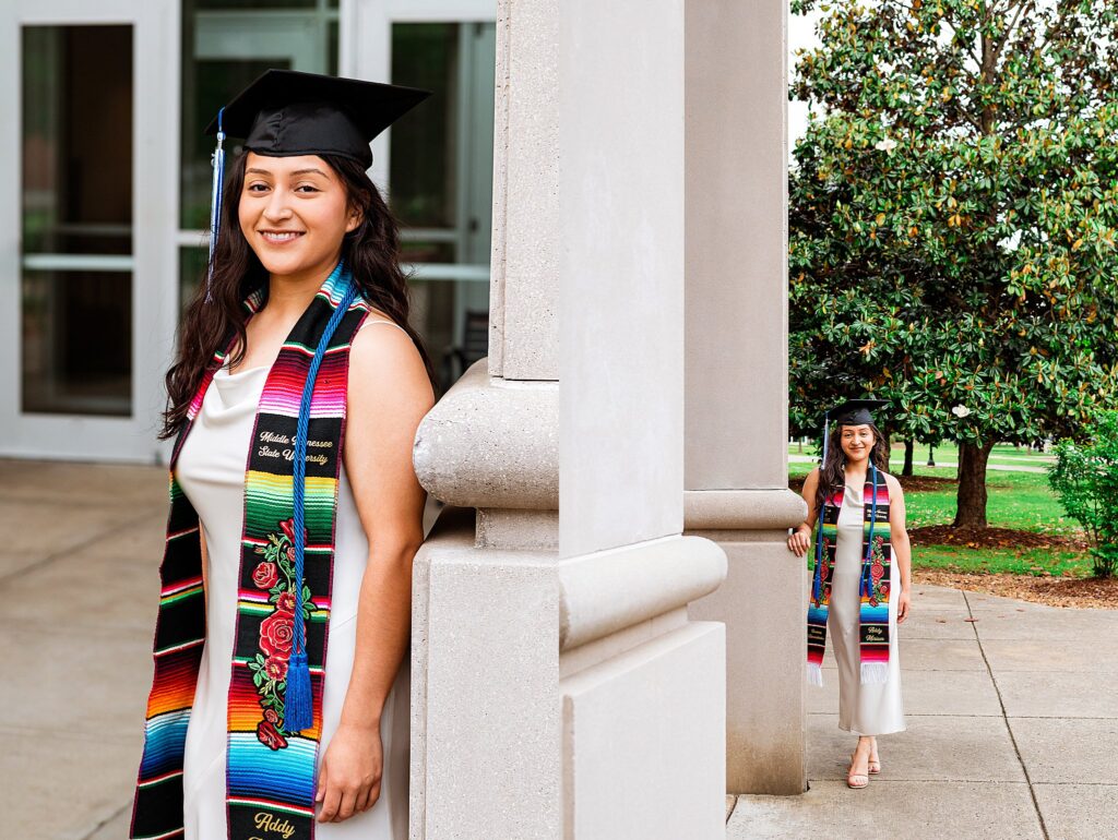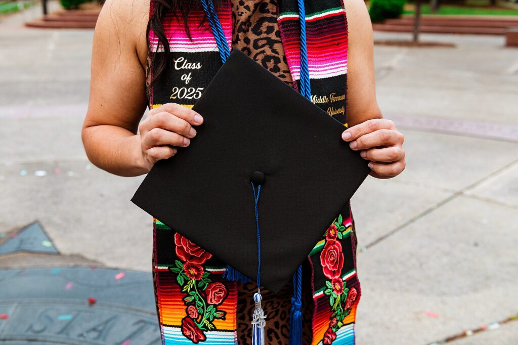 Switching to her cap and gown gave us that timeless graduation feel. Her custom stole and cords added a personal touch, representing her academic accomplishments and involvement during her time at MTSU. These details tell an important part of the story, and as a Middle Tennessee State University graduation photographer, I always encourage seniors to bring along every accessory that reflects their journey.